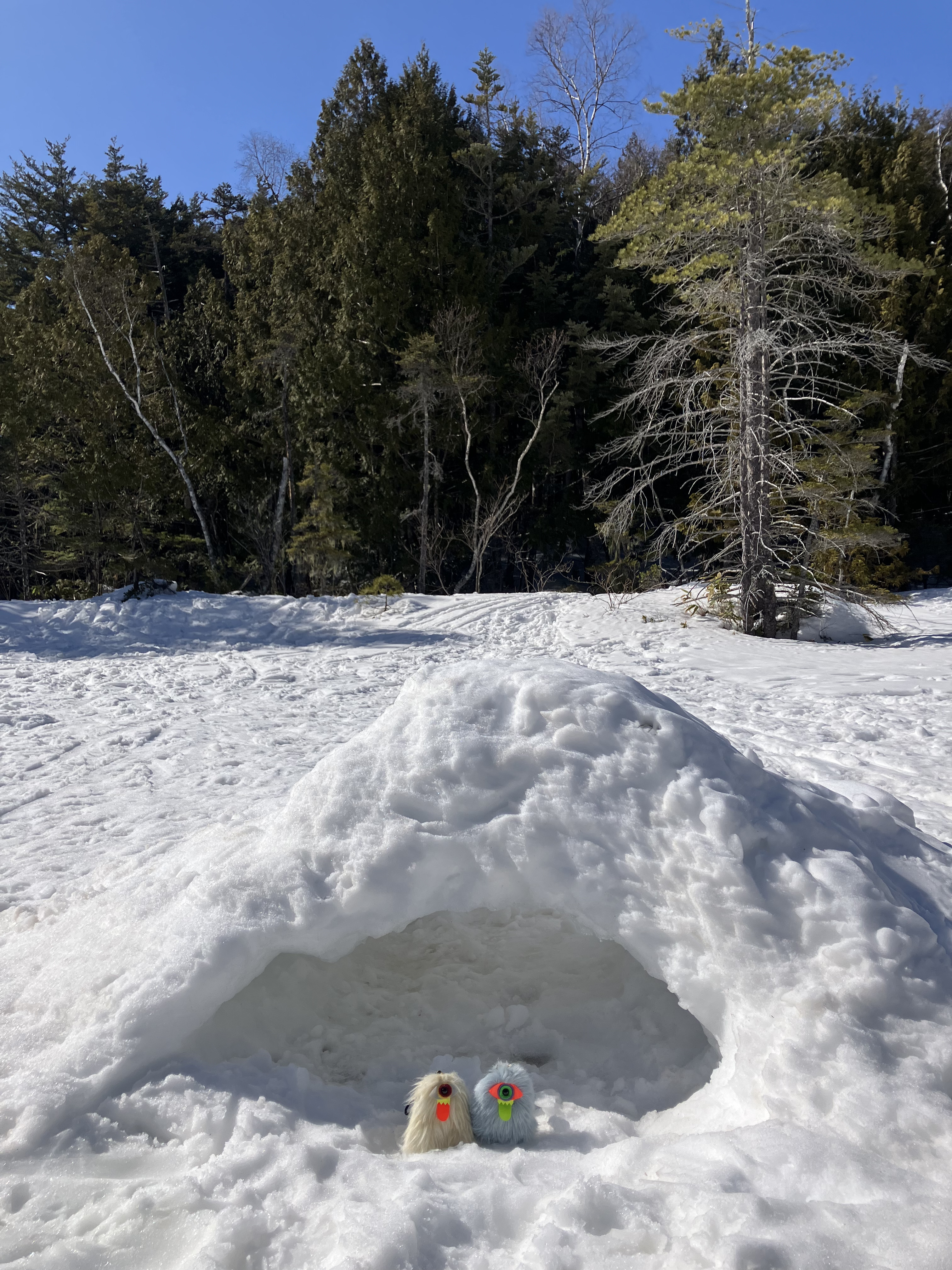 牛留池に到着すると、そこには小さなかまくらがあり、その向こうにはまたもや乗鞍岳が姿を現してくれました。