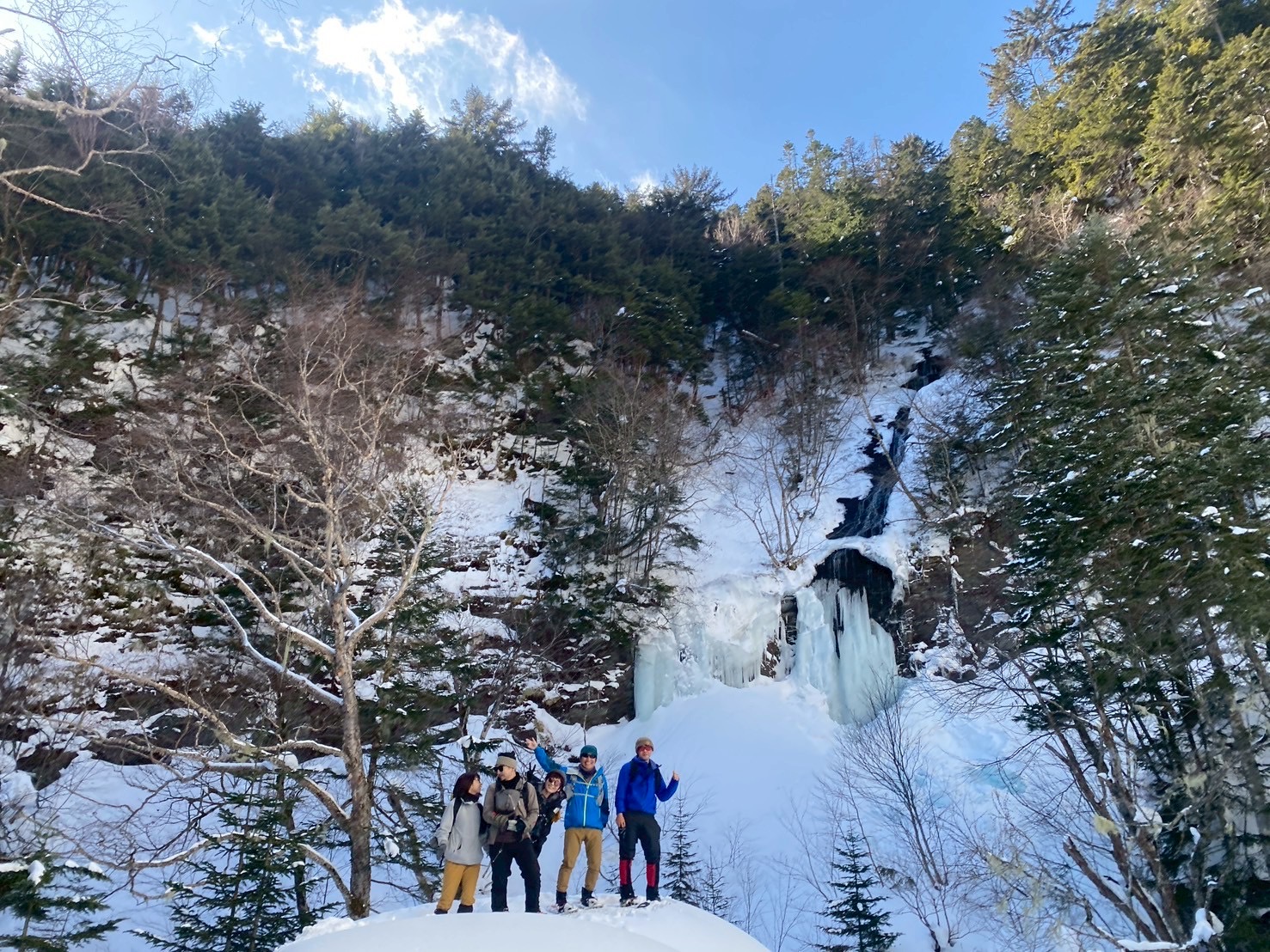 最初に辿り着いた三本滝は、立派なつららをまとい、歓声が出るほどの美しさでした。