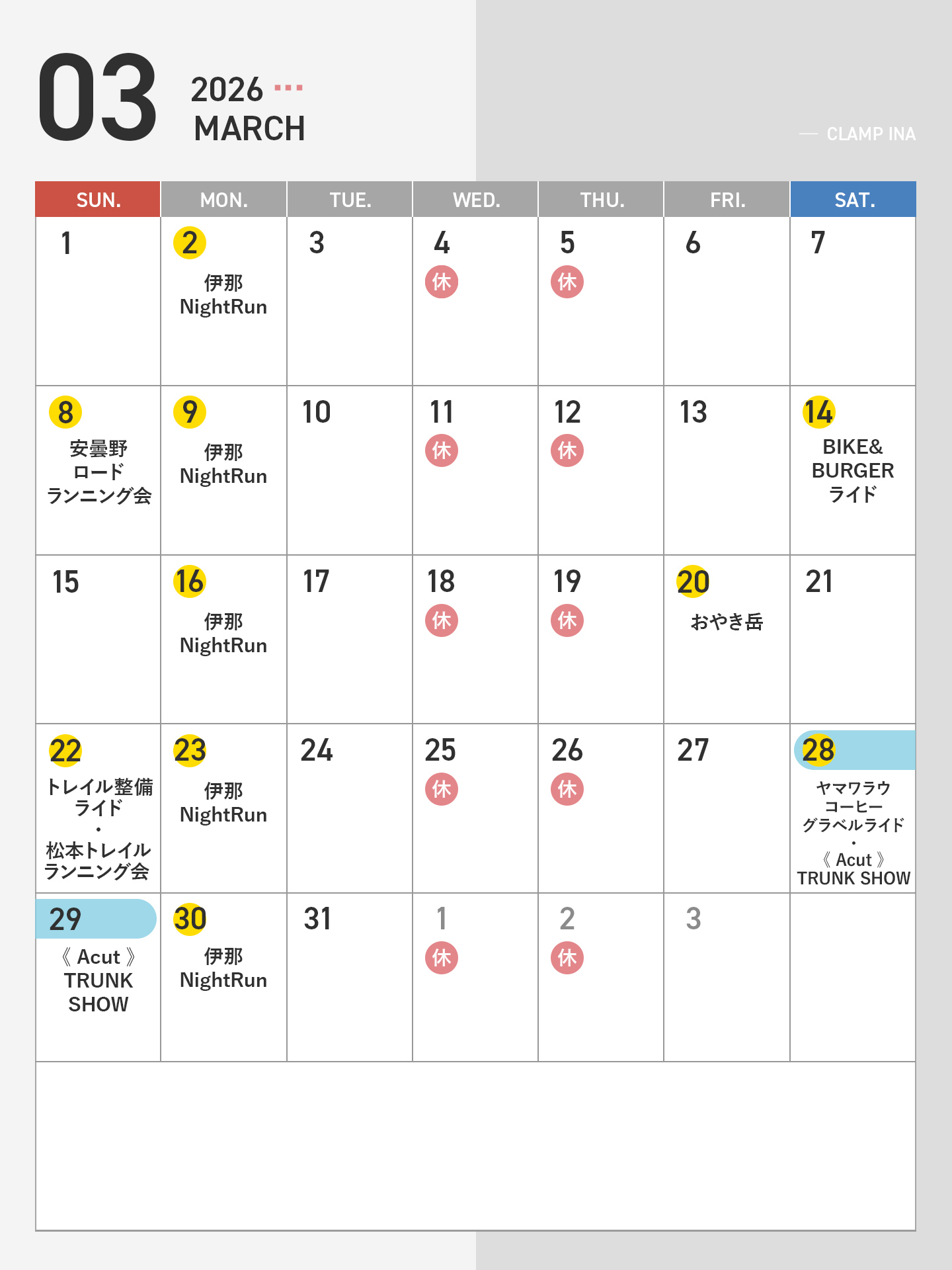 CLAMP RUNNING CLUBのイベントとして、定例ランニング会を伊那店で開催します!