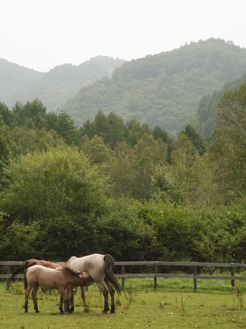 坂を登ればそこは木曽馬牧場でした。仔馬もいたよ。