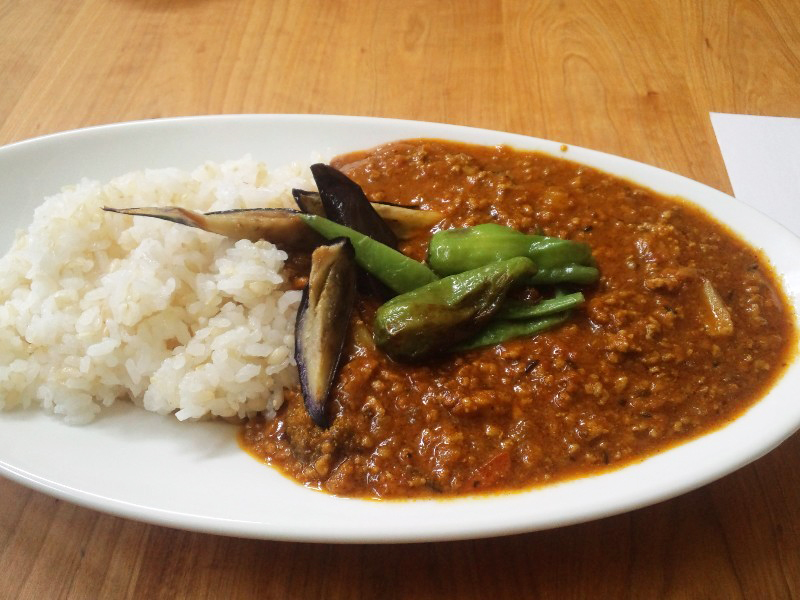 Aセット「キーマカレー開田高原の野菜のせ」は男子に人気。スパイシーでお味は「グー◎」