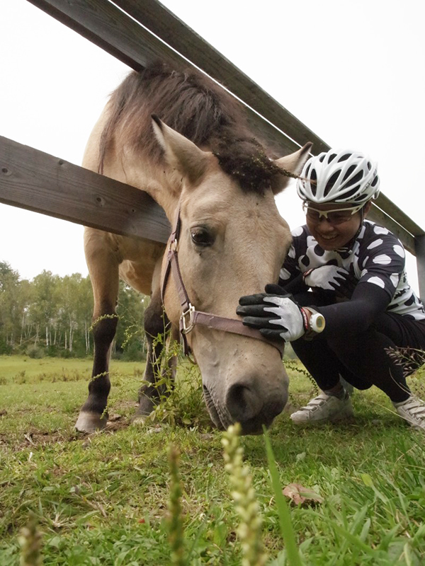 しばし馬を愛でます。牧場の脇をそのまま走れるってすごいロケーション。