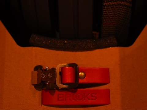 折りたたんで収納する際に使用するストラップは革製でさすがBROOKSといった感じ。