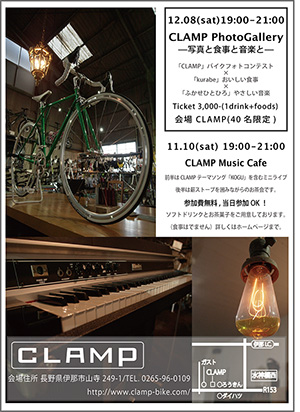 ■ 12/8(土)には、「CLAMP PhotoGallery」ー写真と食事と音楽とー と題して、こちらも19:00よりイベントを行います。