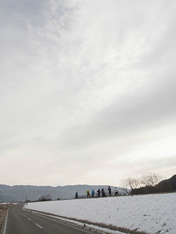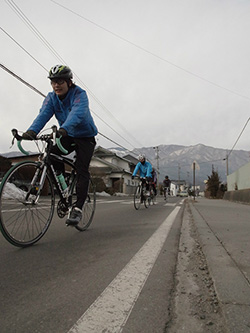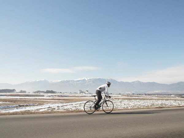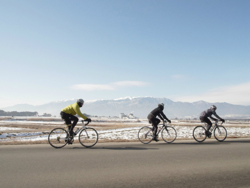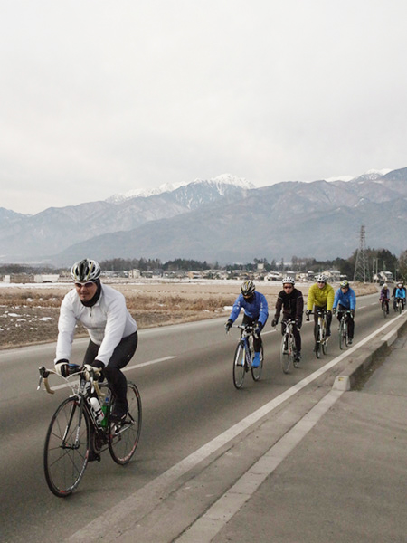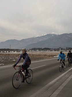 山を背負って 冬ライド。