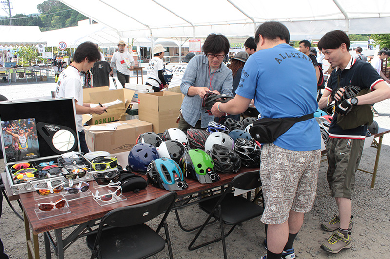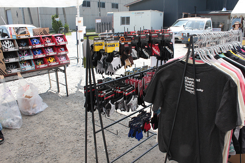 ヘルメットやグローブ、トレーナー、サングラスなどの物販コーナーのほか、