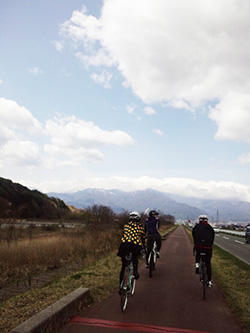 三峰川のサイクリングロードに入ります。