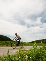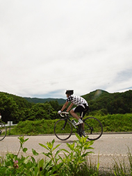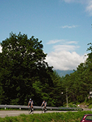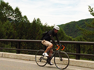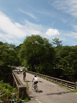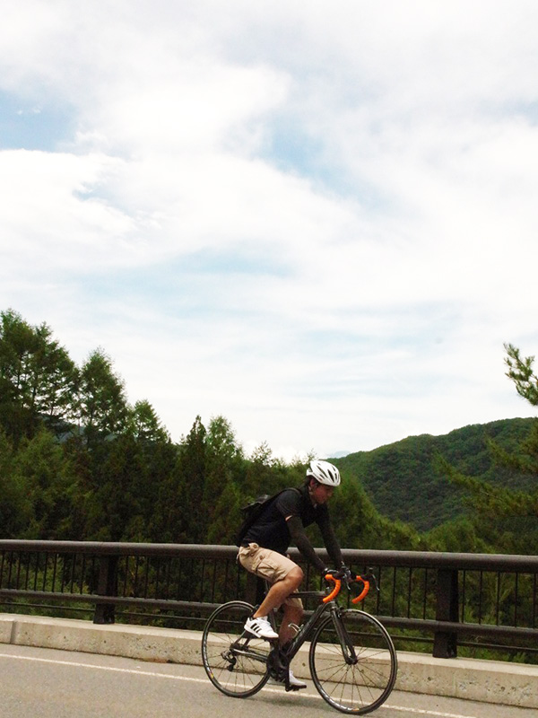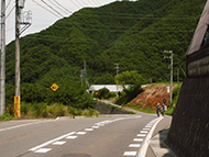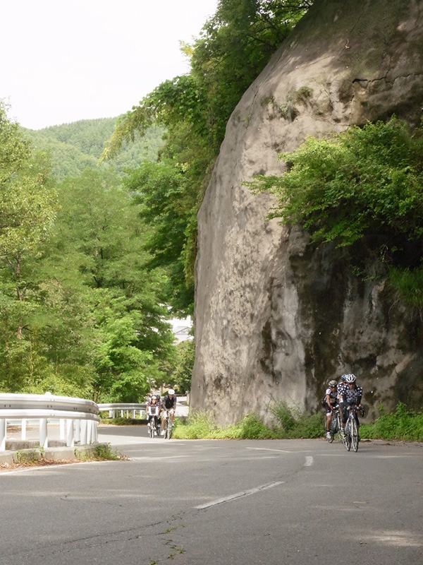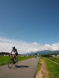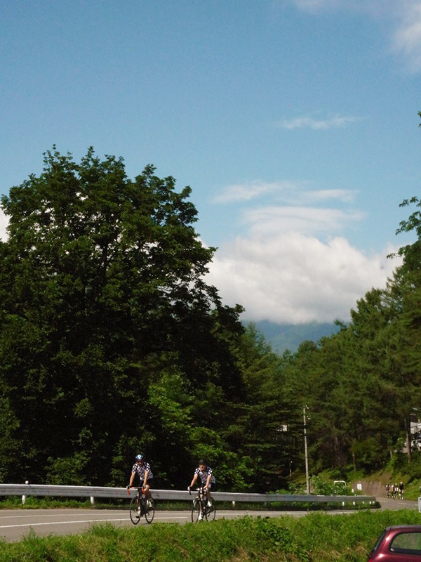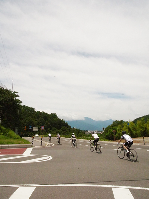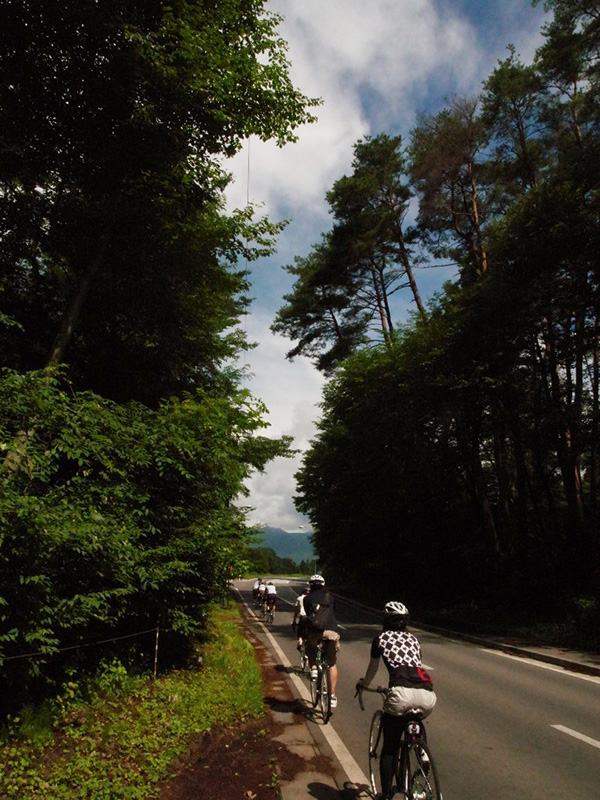 天竜川沿いから手良へ。木陰はやや涼しいですね。紅一点、女子もスイスイ走行中。