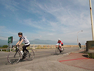 新山にむけて坂道坂道。クロスバイク、鬼漕ぎ!!速い。