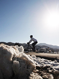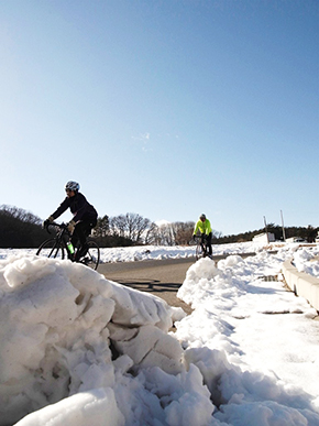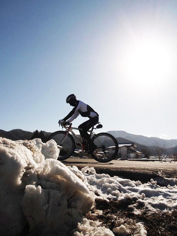前日にマルケンが試走に行ってくれたのですが、標高をあげなければ日向の雪は溶けて