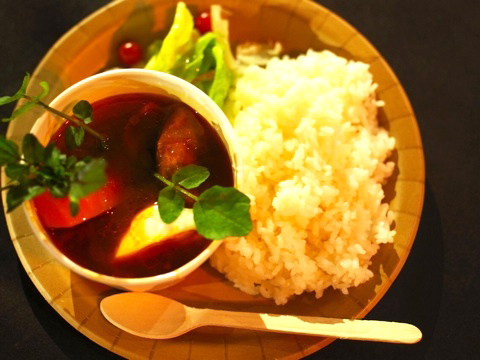 地元の野菜ごろごろのスープカレー。ごはんも中川村産です。