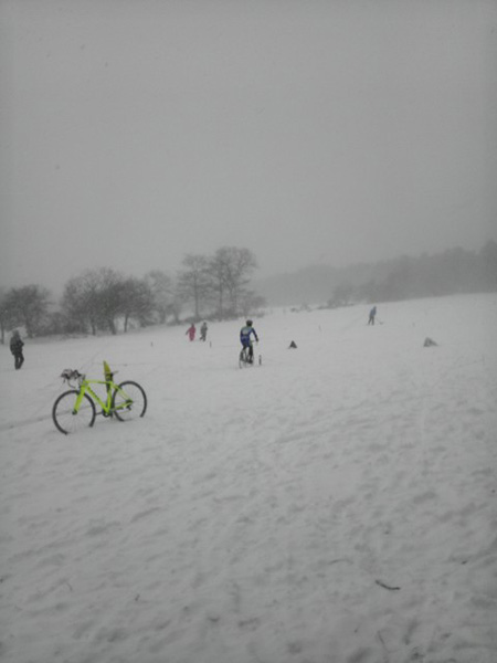 今回初めてシクロクロスのレースに参加したわけですが、初レースにして雪という非常に過酷な条件となってしまいました(笑)