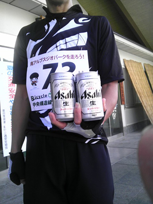 お客様はじゃんけん大会で見事ビールをゲット!どうやって持ってくのって、送迎バスに荷物として長谷まで持って行ってくれるそうです。