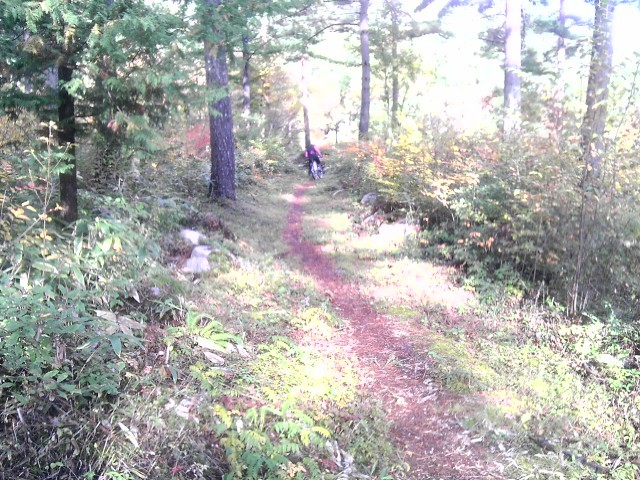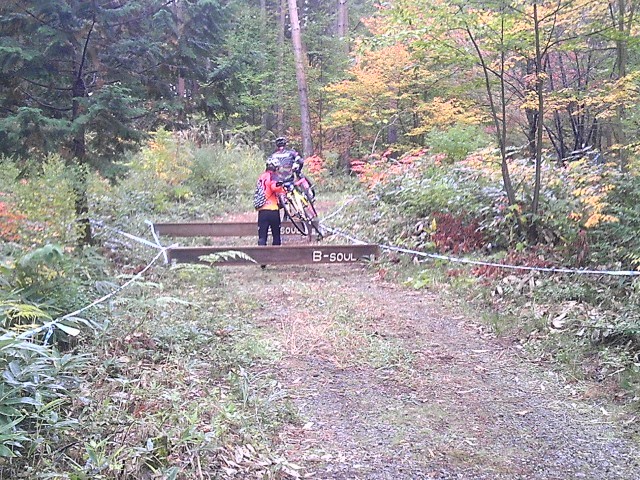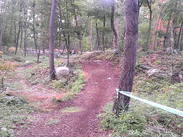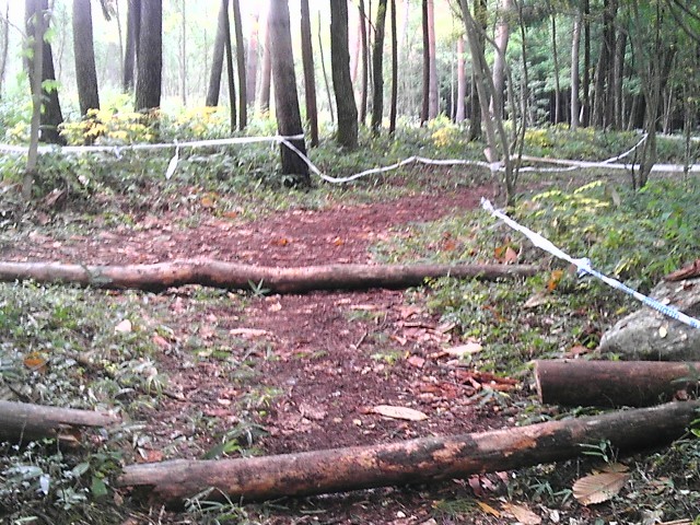 上の看板のあたりから右へ曲がり、シングルトラックへ、ここがスピードも出て、テクニカルな部分。何人か落車、パンクをしている人がいましたね。