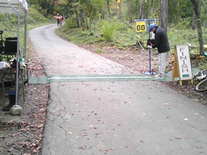 最大斜度8パーセントの上り坂を越え・・・スタート地点の舗装路を走り、