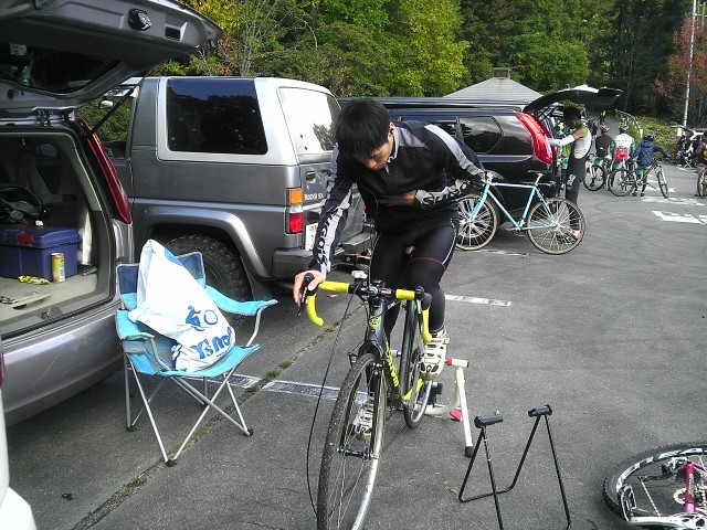 で、そうこうしているうちにウォームアップ開始!初めから全開のシクロはキツメにやっとかないと体がついていけまへん。