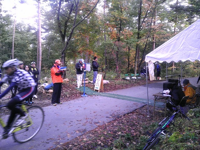 スタート召集へ行き、前から2列目を確保。しかし、なんでC2にいるんだ?ってメンツがちらほら。MTBエリートだった某自転車店のオーナー。(今も一桁順位で走れる)某教室をやってらっしゃる方等。