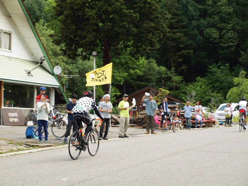 ここから先の区間、勾配がゆるい区間ではペースを上げて、キツイ区間は立ち漕ぎを織り交ぜながらペースを刻んでいく。途中で、激坂区間で先行された選手の背中が見えた!!この区間で思っていた以上に差を縮めることができたようだ!!その背中をモチベーションに進んでいく!
