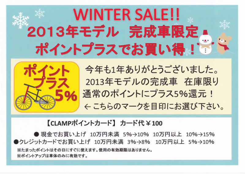 「ウィンターセール」2013年モデル完成車限定 ポイントプラスでお買い得!